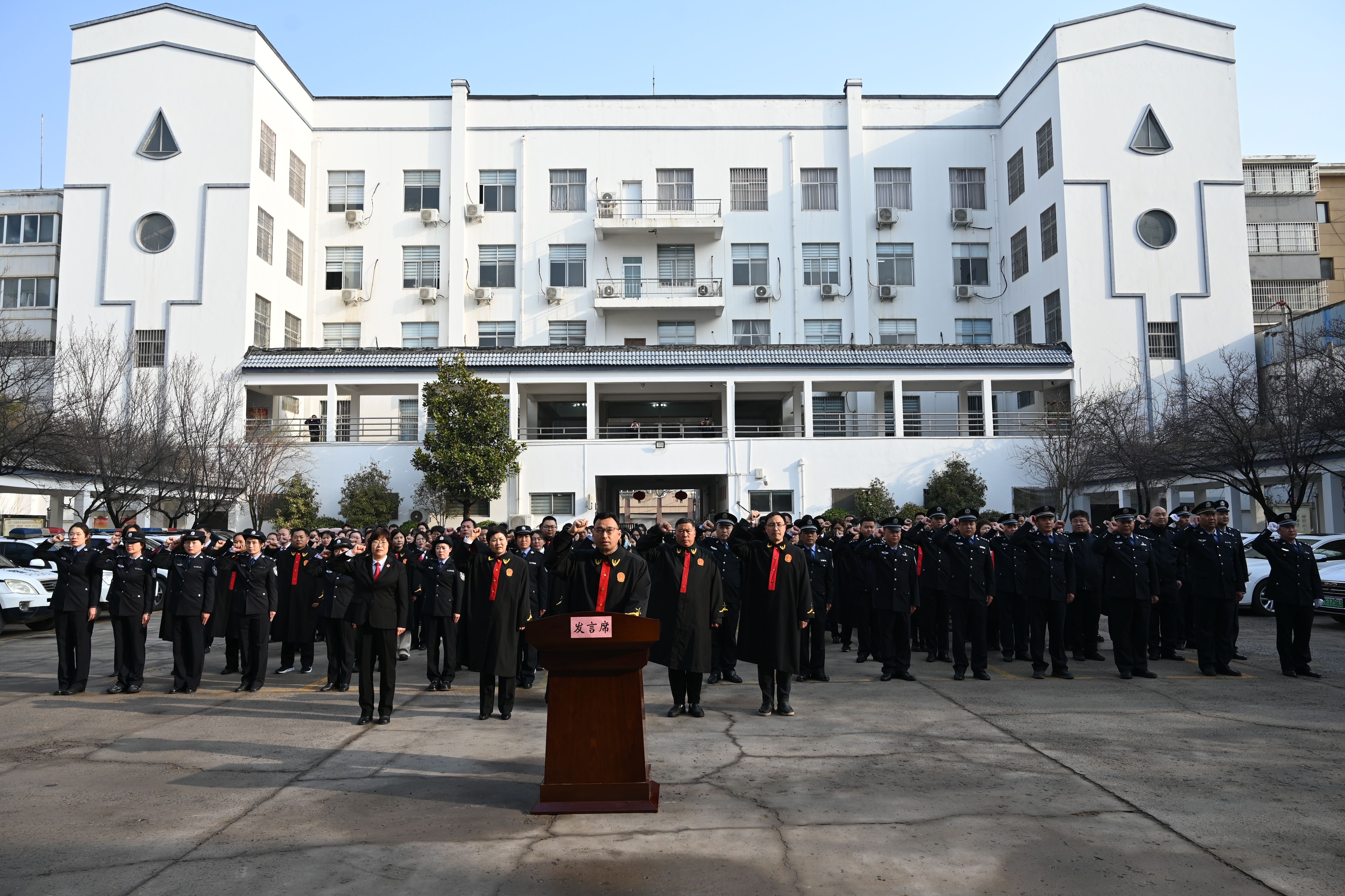 “忠于中华人民共和国宪法,维护宪法权威,履行法定职责……”全体干警庄重宣誓,心中满怀对司法事业的忠诚与担当、对新一年工作的憧憬与决心,以庄重的仪式感开启新一年的工作征程。